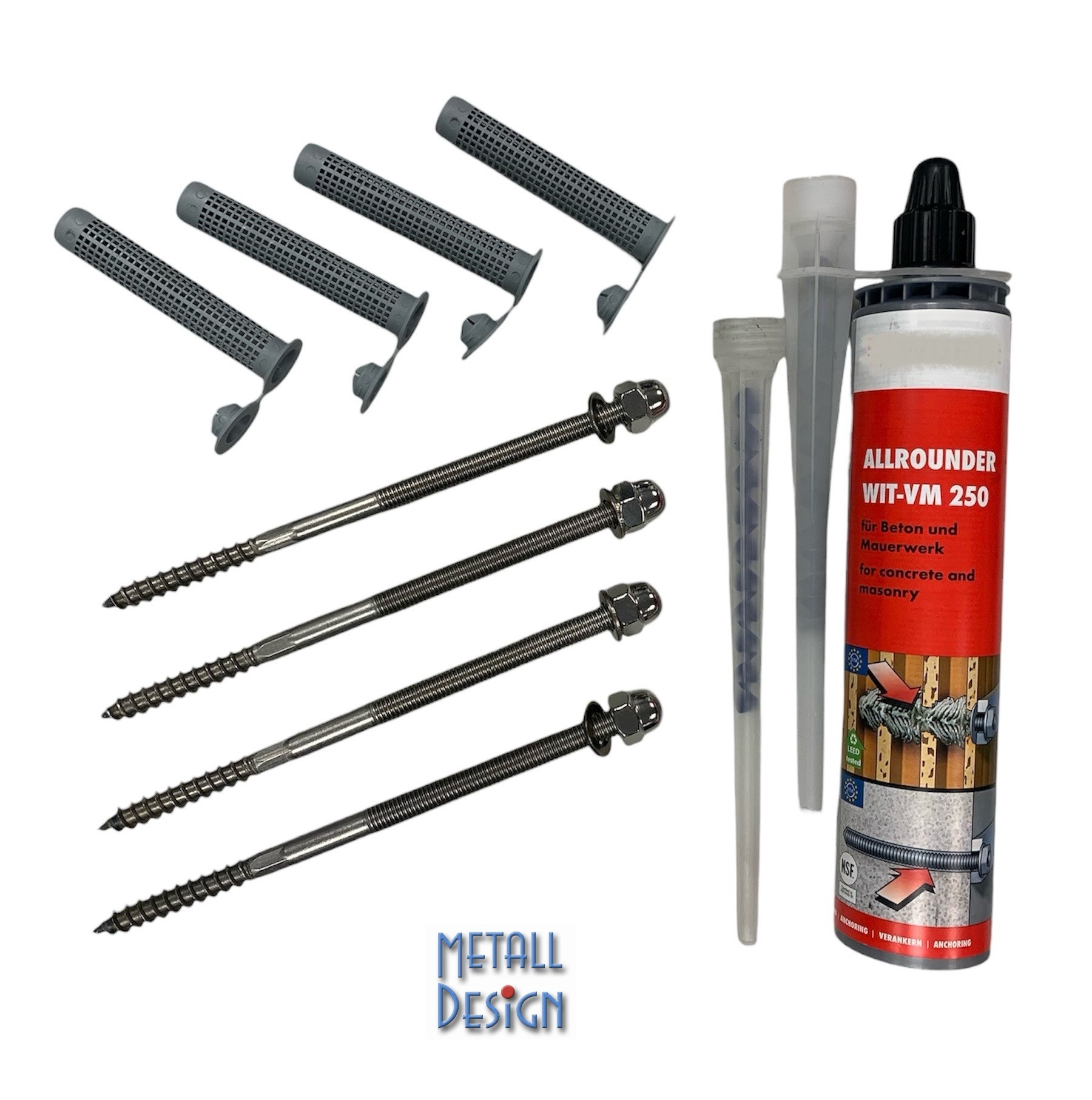 - Zur Befestigung von: Stahlkonstruktionen, Geländern, Handläufen, Konsolen,Treppen, Toren, Vordächern, Abstandskonstruktionen.