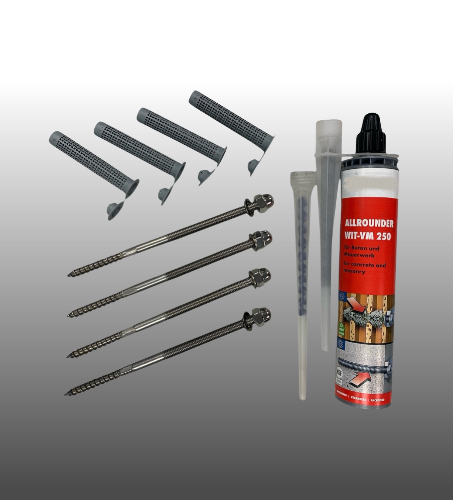 Der Injektions-Mörtel besteht aus einem 2-Komponenten - Polyesterharz für Befestigungen in Mauerwerk und Beton,