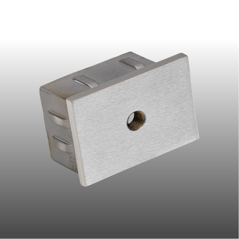 Die geschliffene Endkappe für den Abschluss an einem Rechteckrohr eignet sich für alle Geländer Handläufe und Geländerpfosten.
