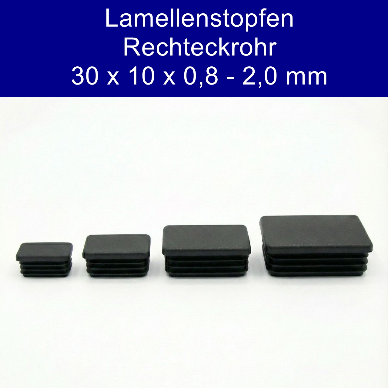 Rechteckrohr Lamellenstopfen 30x10x0,8-2,0 mm Kunststoff Schwarz