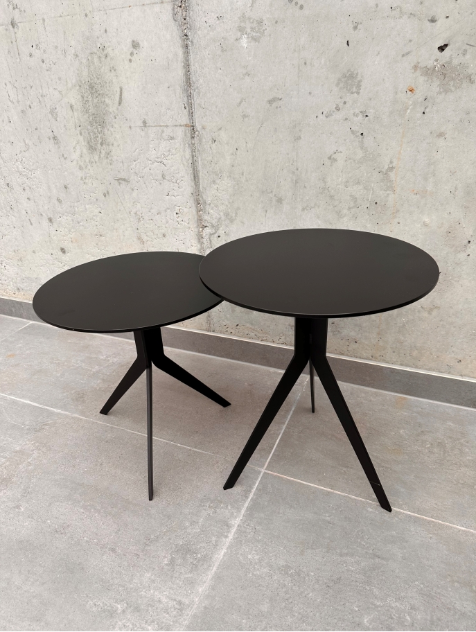 Das Tischset KOA glänzt durch elegante, schmale Linien und ist durch das Angebot zweier Größen nebenbei noch vielseitig einsetzbar. Sei es als Wohnzimmertisch vor dem gemütlichen Sofa, als Nachttisch neben dem Bett, oder als kleine Ablage im Hausflur für Schlüssel und Dekor. Dem Tisch sind in seiner Anwendung keinerlei Grenzen gesetzt. Darüber hinaus versichert der Tisch höchster Stabilität und Langlebigkeit. Sowohl die Tischbeine, als auch die Ronde sind aus 8 mm Stahl gefertigt und werden einheitlich in Ihrer Wunschfarbe beschichtet.