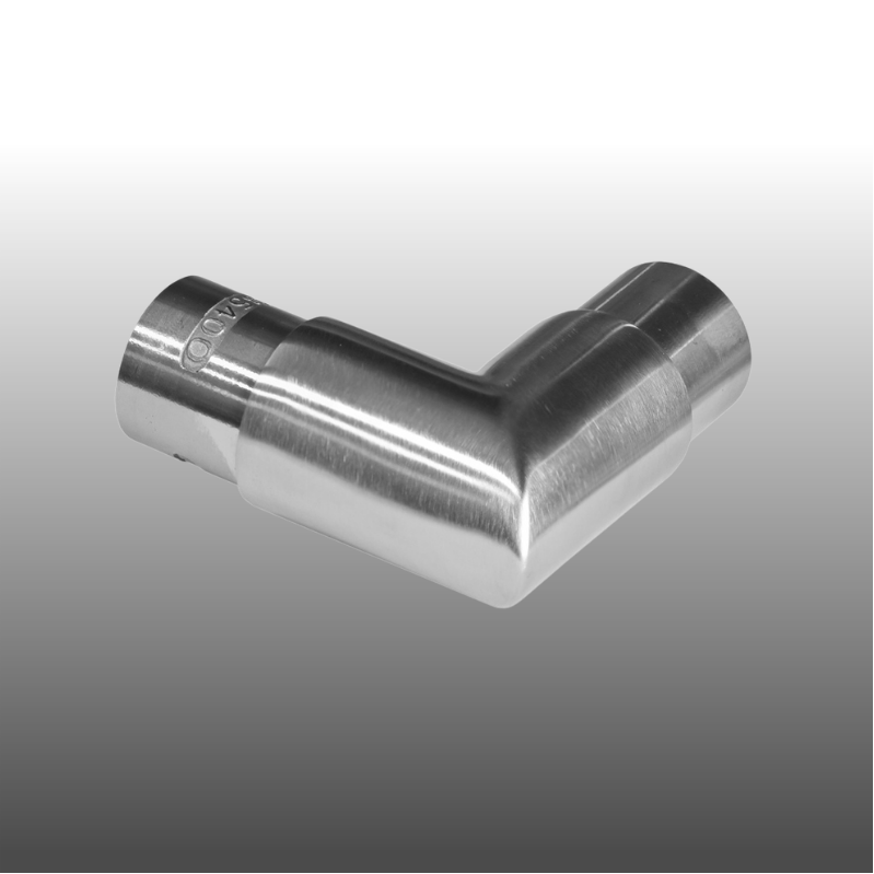 Eckbogen für Rundrohre aus Edelstahl, Oberfläche fein geschliffen.