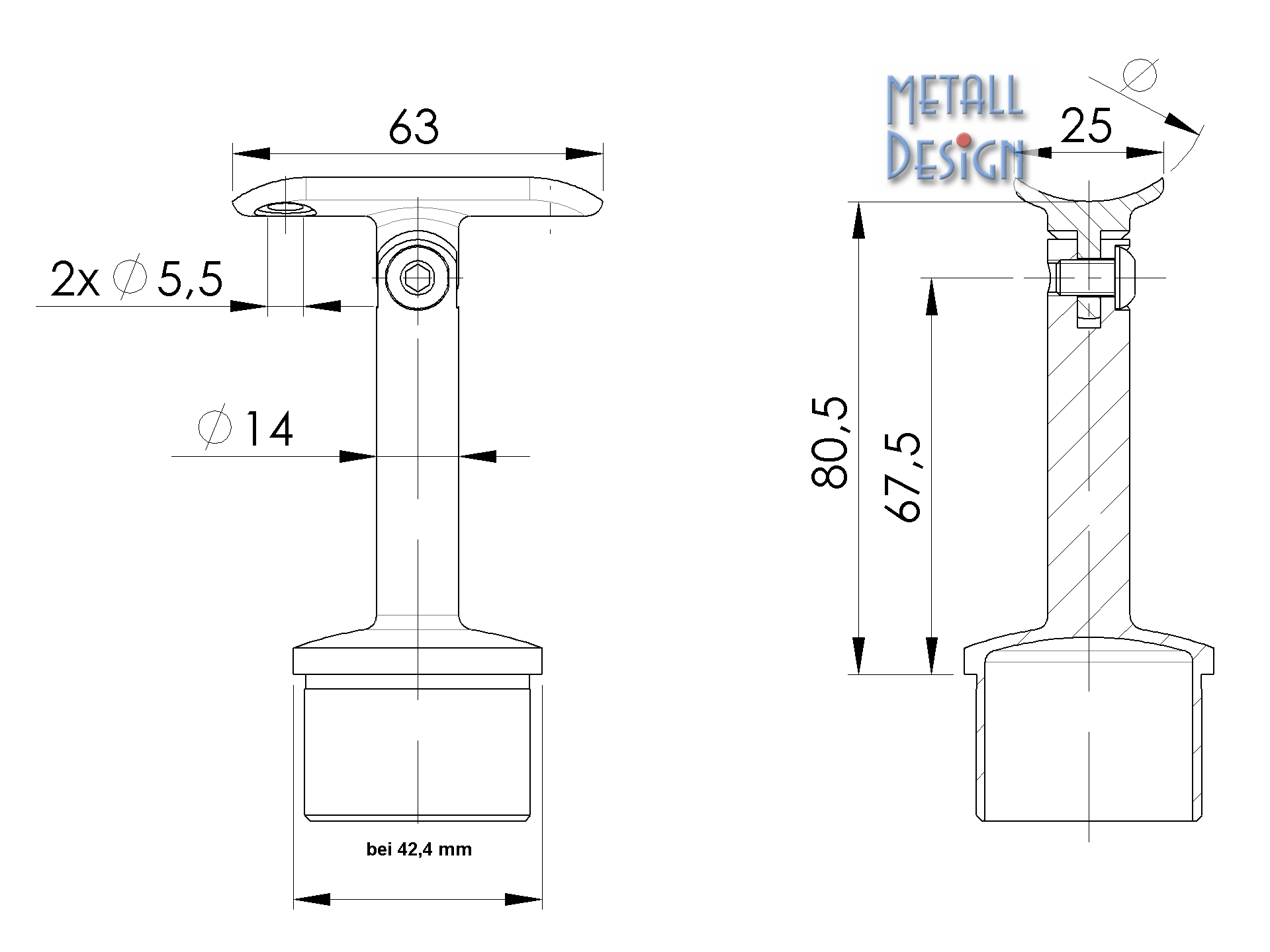 Geeignet für Rohrdurchmesser von 33,7 mm, 42,4 mm und 48,3 mm passend.