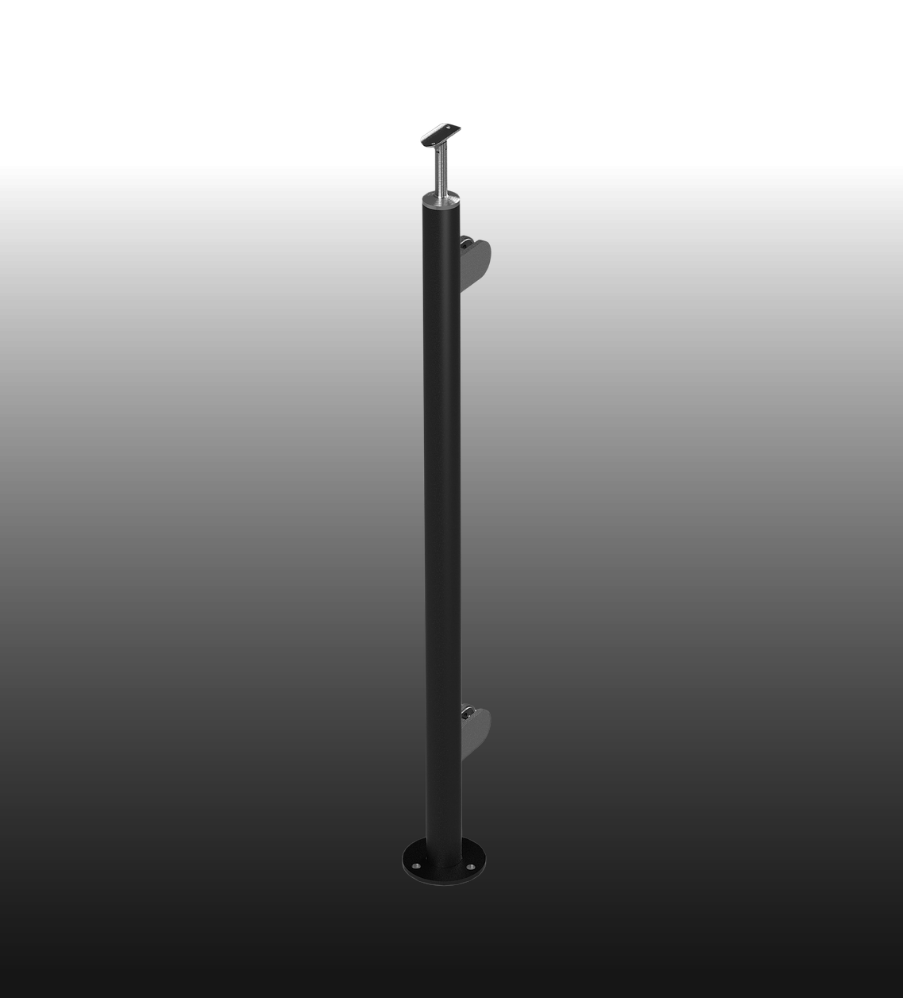 Pulverbeschichteter Endpfosten für Glasgeländer, aufgesetzte Befestigung.