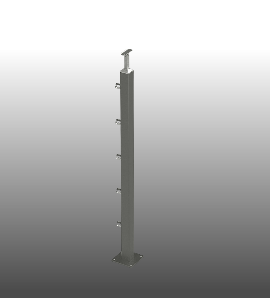 Geländerpfosten DB703 pulverbeschichtet mit 5 Querstabhalter Vierkantrohr aufgesetzte Montage