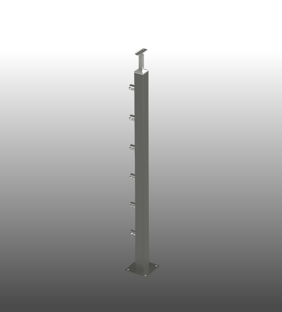 Alle Anbauteile für den Pfosten sind in hochwertigen Edelstahl mit fein geschliffener Oberfläche ausgefürt.