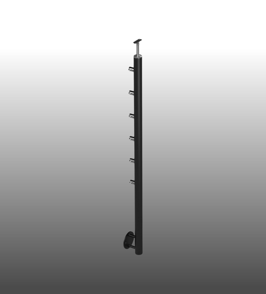 Pfosten für Relinggeländer pulverbeschichtet, anthrazitgrau, seitliche Befestigung mit 6 Querstabhalter