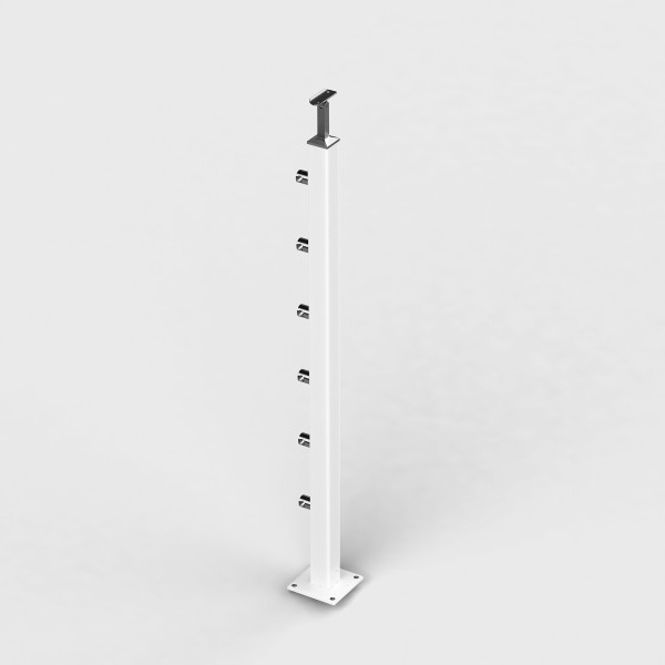 Geländerpfosten pulverbeschichtet, weiß, RAL 9016 - 6 Querstabhalter
