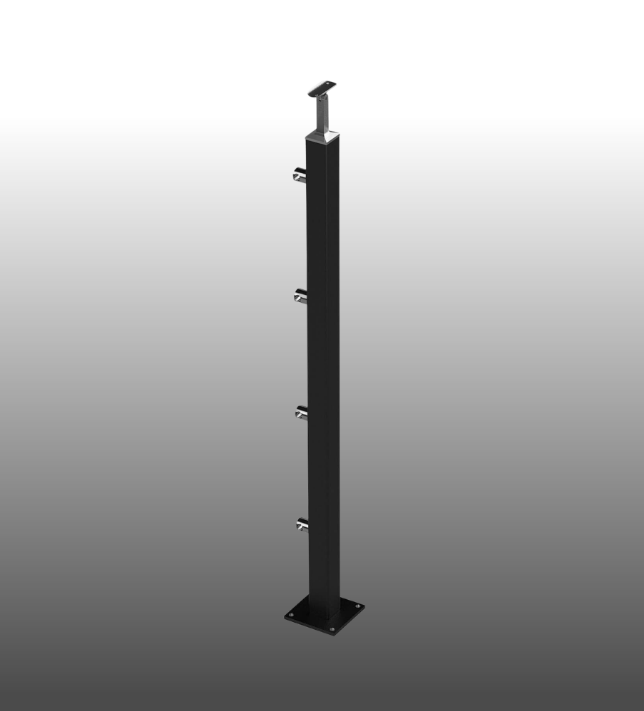 Geländerpfosten RAL7016 pulverbeschichtet anthrazitgrau mit 4 Querstabhalter