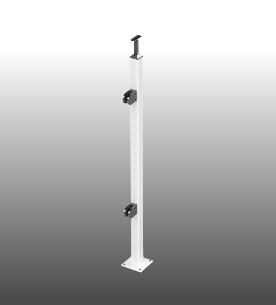 für Glasgeländer weiß RAL9016 Endpfosten.