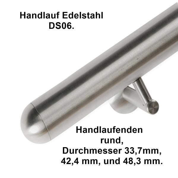 Handlauf-Edelstahl DS06 auf Maß gefertigt mit Endkappen rund