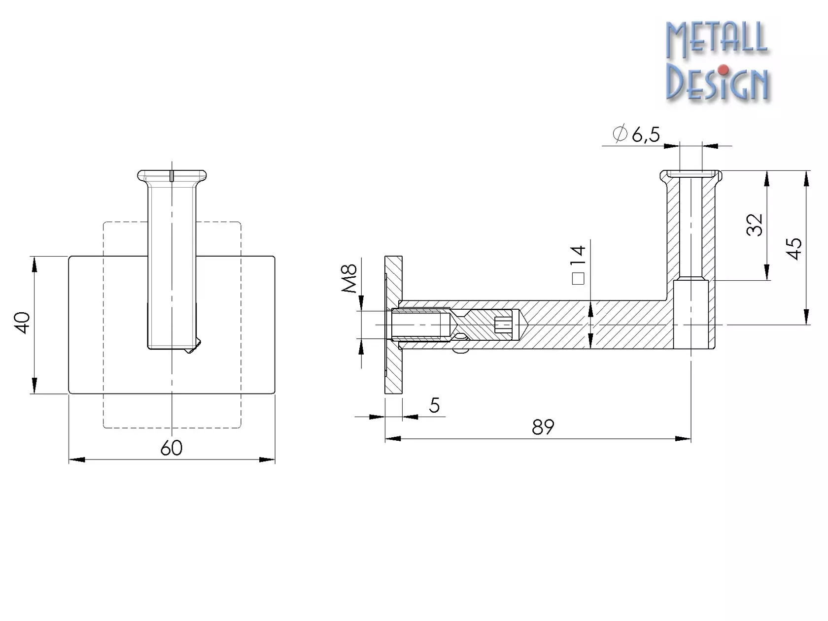 Der Handlaufhalter ist für alle Rechteckprofile flach geeignet und kann am Handlauf frei positioniert werden.