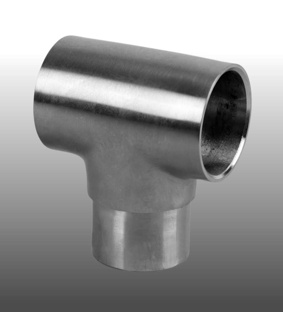 Sehr hochwertiger T-Verbinder für den Handlauf Holz (Durchmesser Holzhandlauf 45 mm) auf einem Edelstahl Geländer Pfosten Basis, mit Durchmesser 42,4 mm.