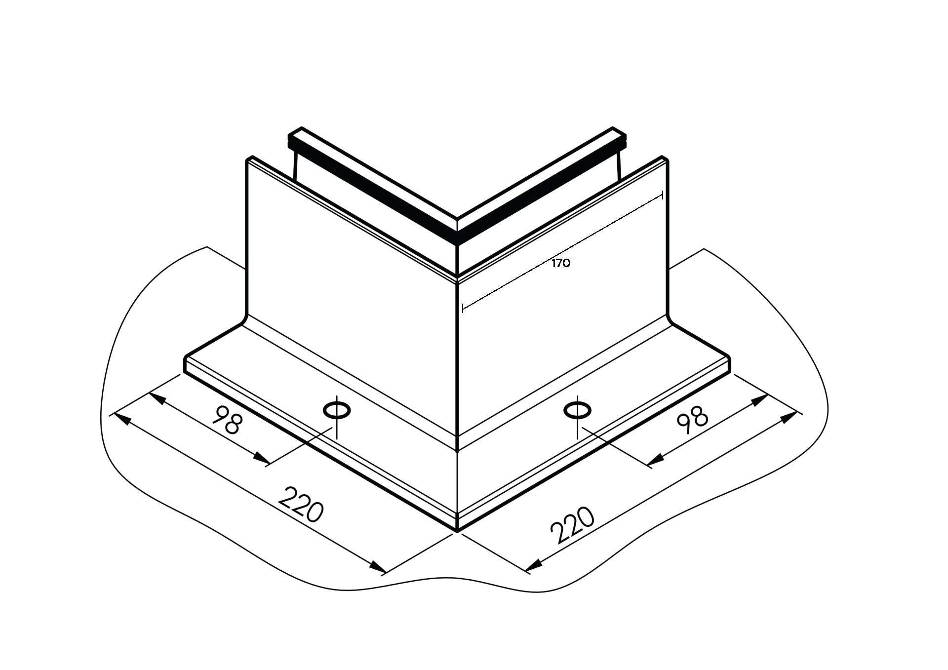 Innenecke Ganzglasgeländer GBP-03 aufgesetzte Montage
