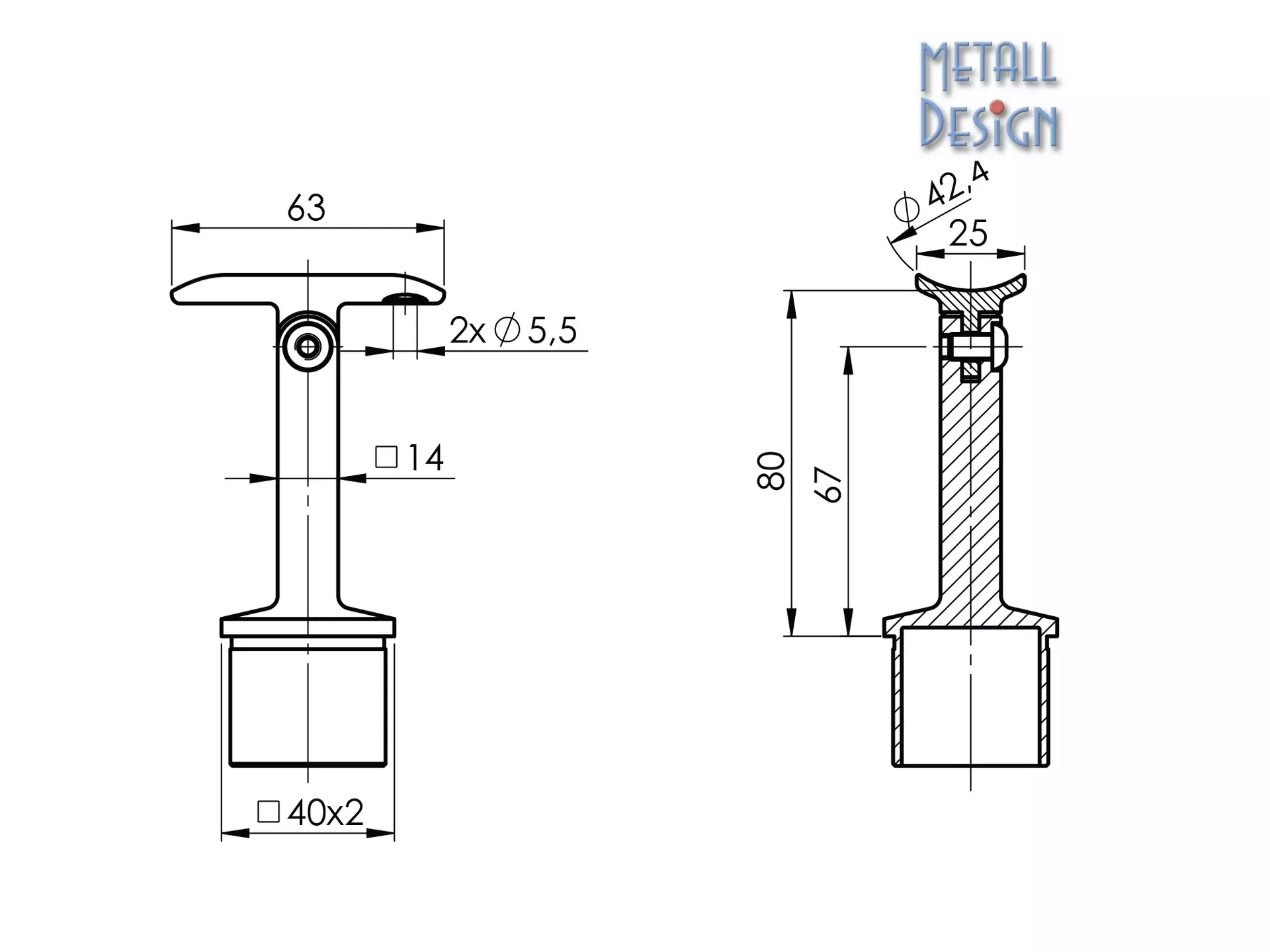 Diese hochwertige Rohrstütze eignet sich für unseren Geländerpfosten Vierkantrohr 40 x 40 mm