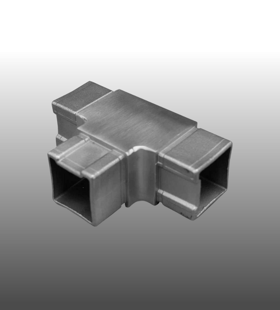 Edelstahl T-Verbinder für das Edelstahl Geländer und zur Anfertigung von Handläufen aus Edelstahl aus Vierkantrohr Edelstahl.